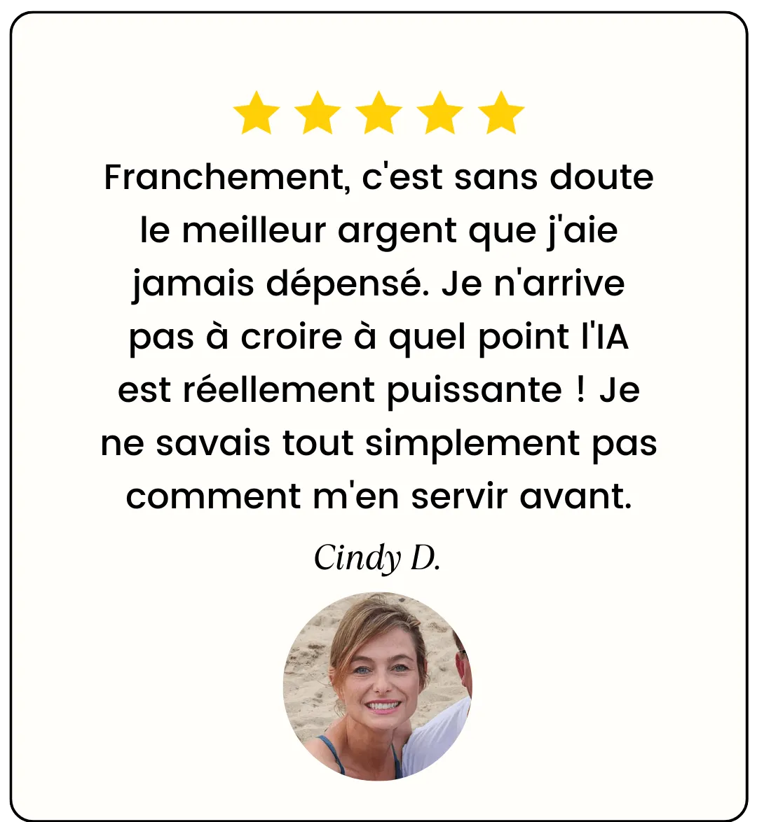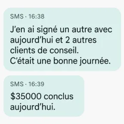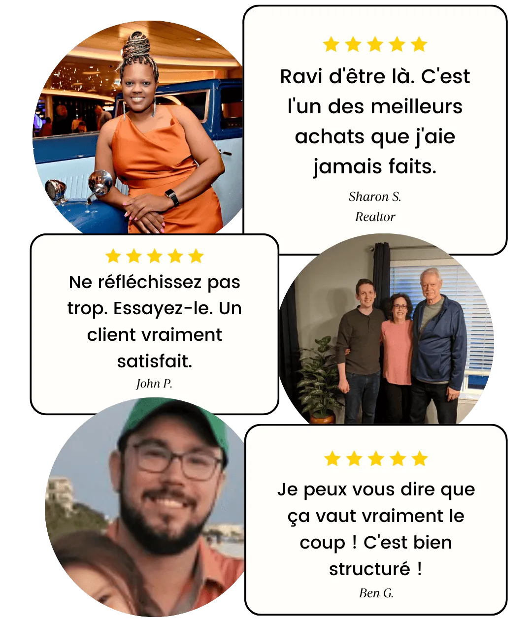 Nos clients ont vu des résultats en aussi peu que 14-30 jours entre la création du livre et la génération d'opportunités. Certains clients comme Jim ont reçu des demandes qui se sont converties en services à 2 200 $/mois peu après la publication. Certains clients comme Arek ont même gagné 60 000 $ en 48 heures. Les résultats varient en fonction de votre expertise, de votre marché et de la manière dont vous exploitez activement votre livre comme outil de renforcement d'autorité.