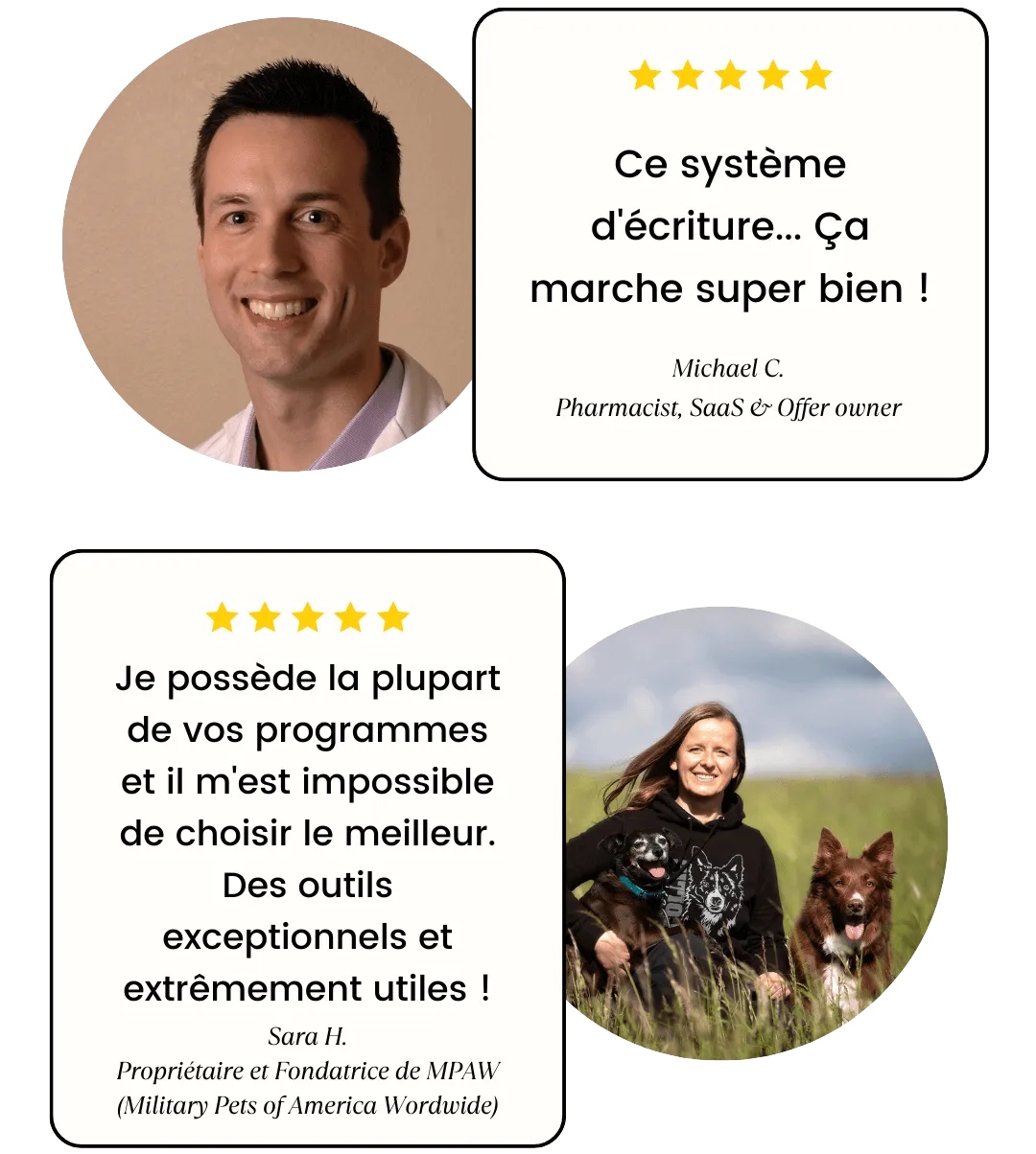Nos clients aussi pensaient que c'était contre-intuitif au début... mais ensuite ils ont été présentés dans des publications majeures, invités à parler sur scène... Recevant des emails & MP d'inconnus demandant comment travailler plus étroitement avec eux... Leurs livres obtiennent des avis 5 étoiles sur Amazon...